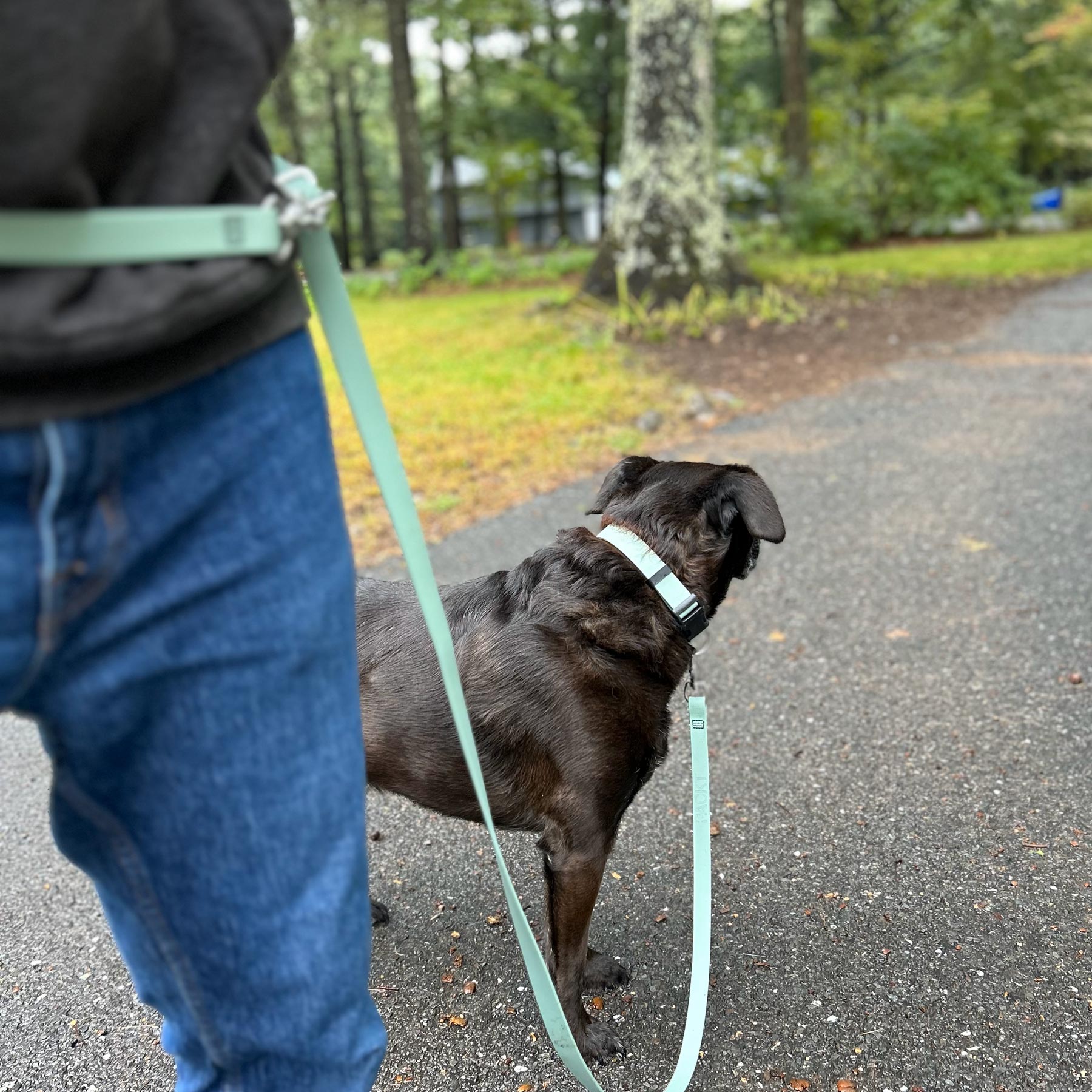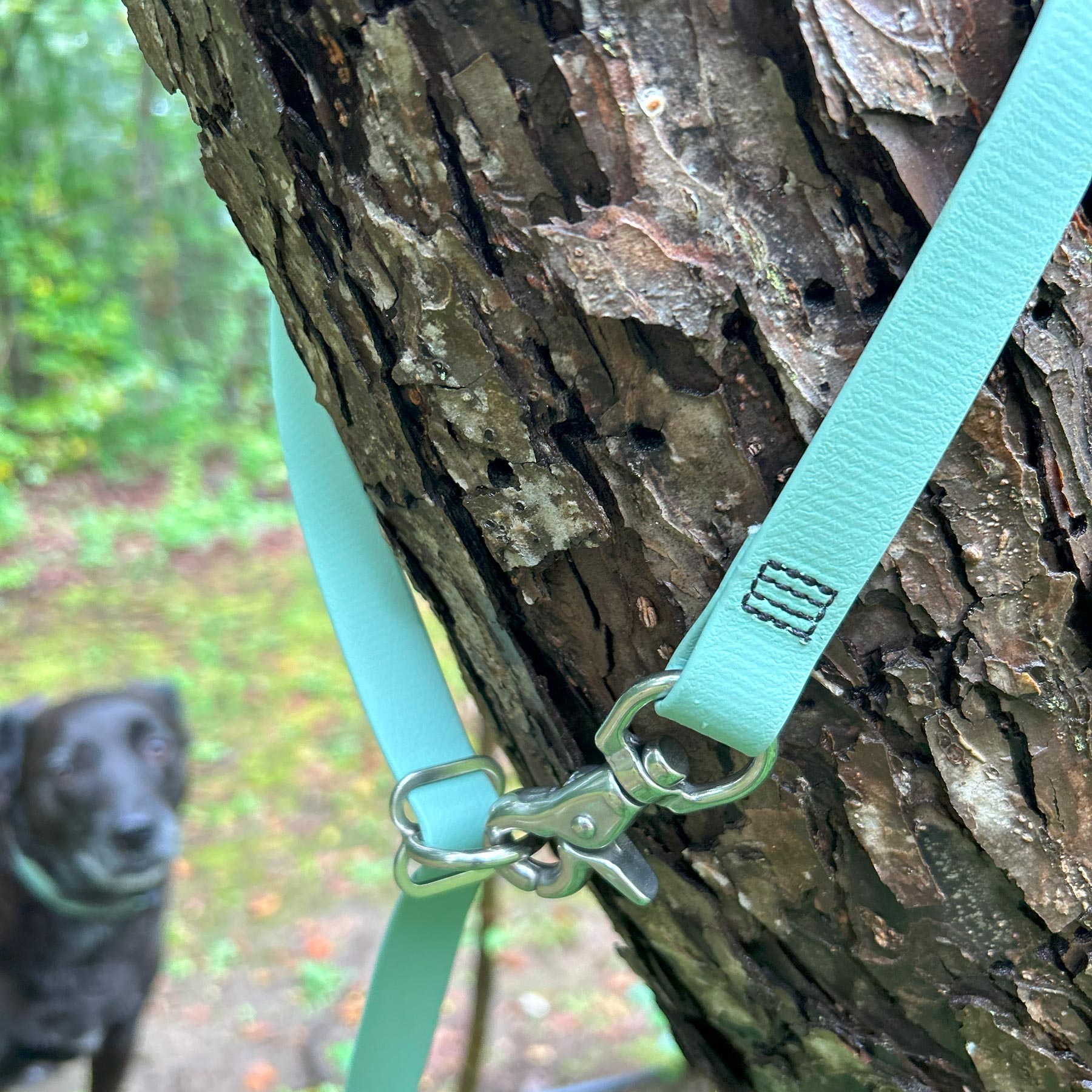 Stay engaged in life's adventures with a leash that is as versatile as you and your dog(s). Our Adjustable Stainless Steel Slide Lock allows you to go Hands-Free, Double us as a Coupler, or even temporarily tie off to a tree. Enjoy This leash for all of life's adventures.