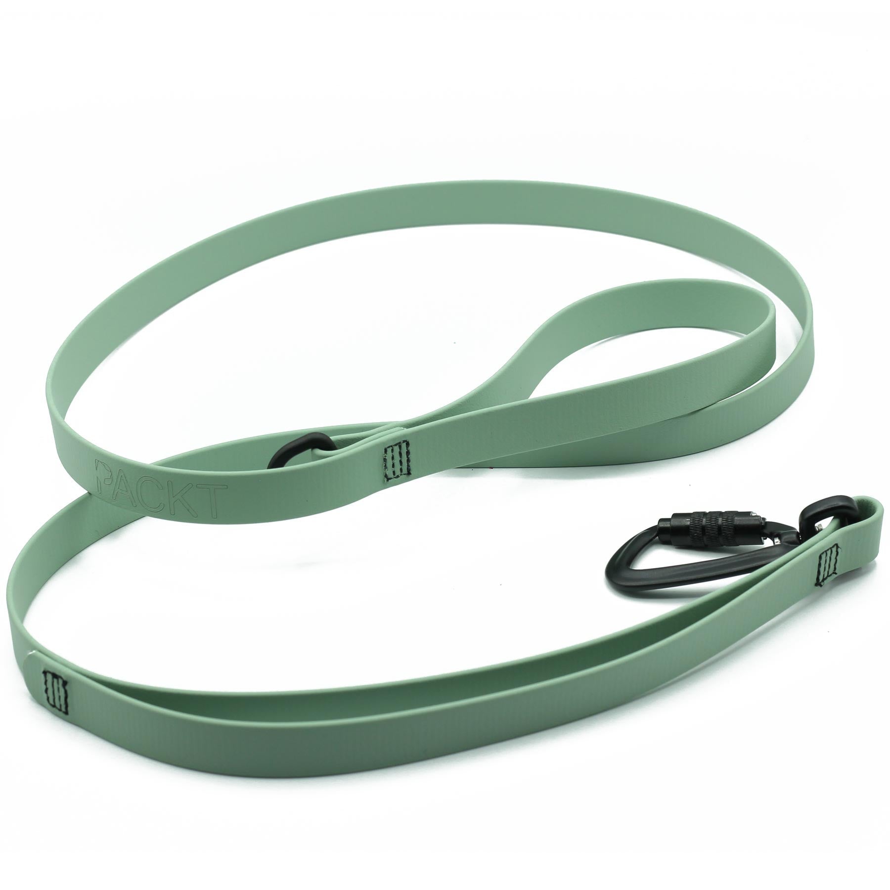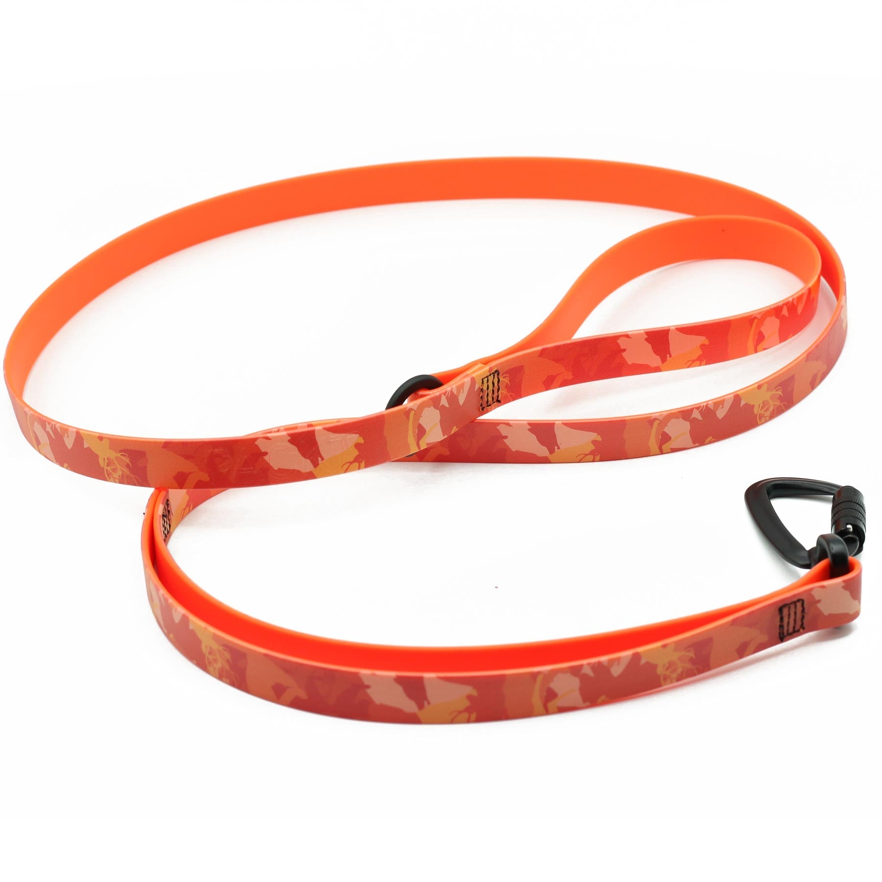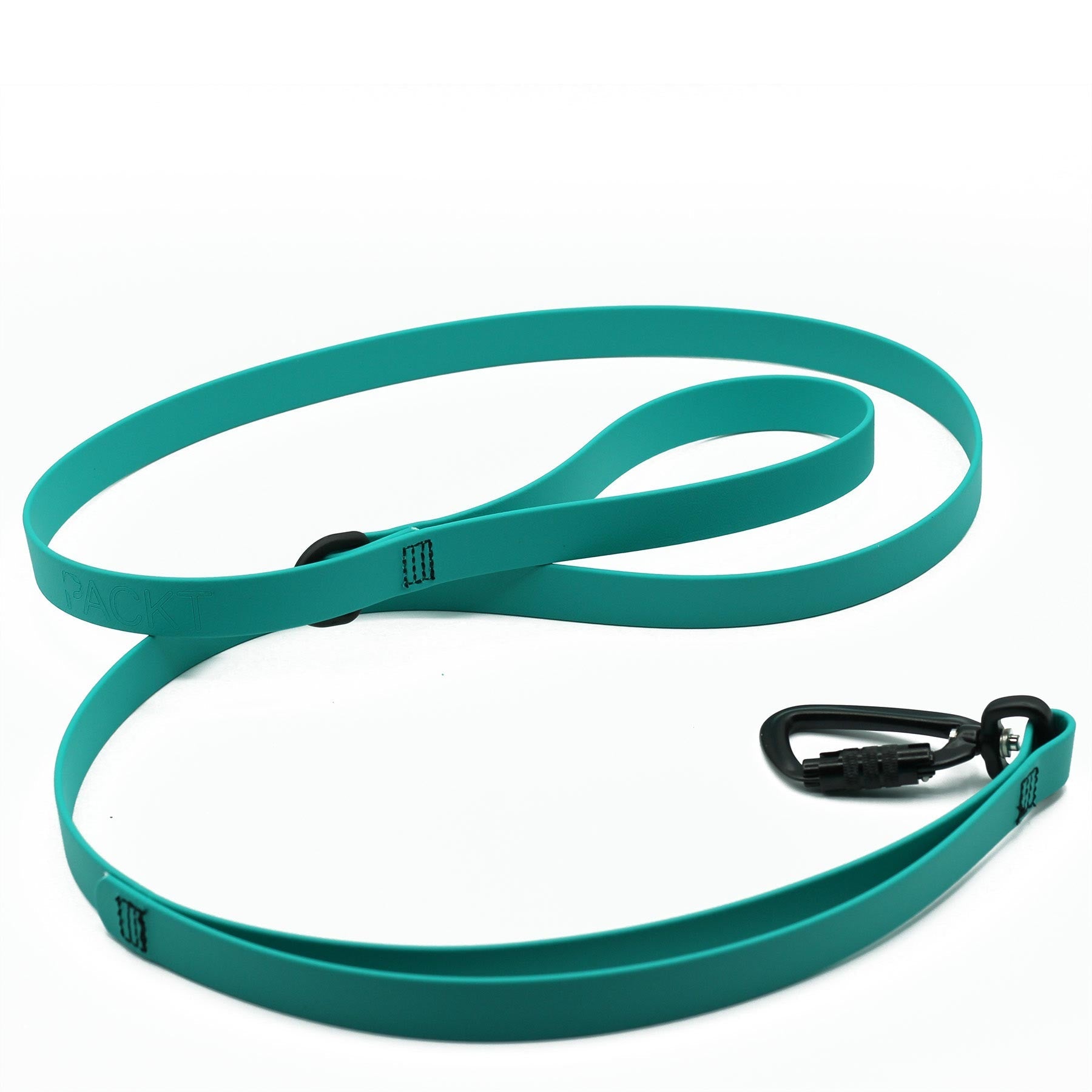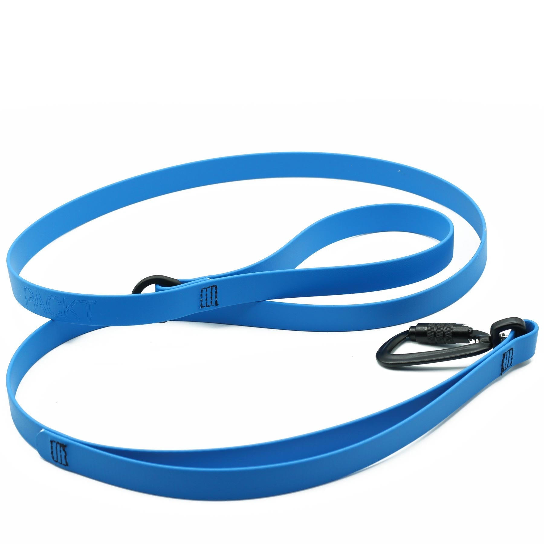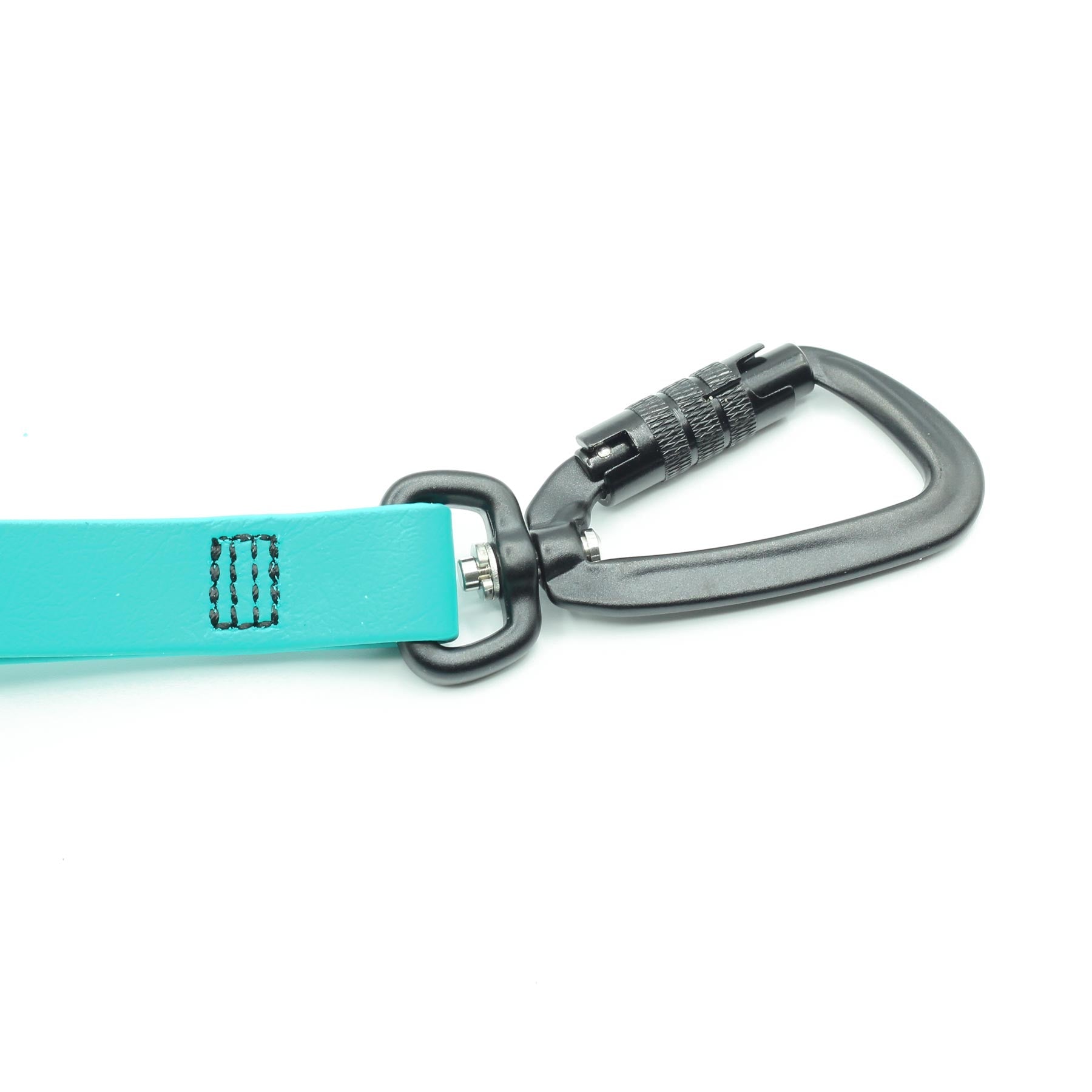 When designing this this leash, we put the focus on safety, durability, and pack-ability. At only 5oz. this 5 ft. leash can still handle over 600 lbs. of pull and features an embedded traffic handle, autolocking carabiner, accessory d-ring, and of course Biothane beta waterproof material.